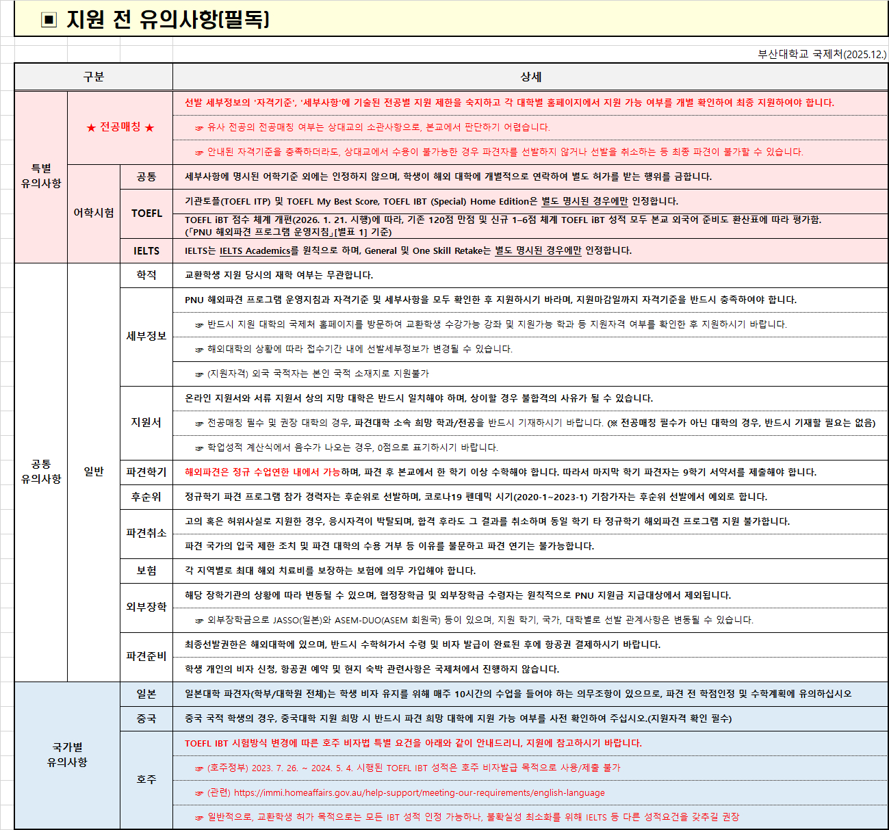 정규학기 파견(학생) | 최수정 | outbound@pusan.ac.kr | 510-3652 |